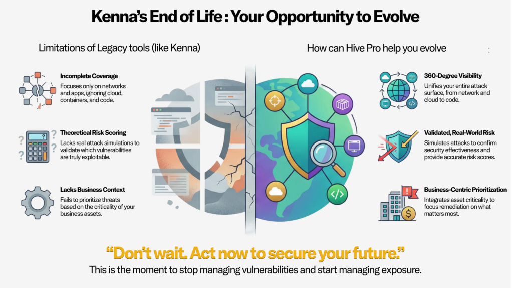 Please get in touch with us to discuss how Hive Pro can make the Kenna to Hive Pro journey seamless both technically, as well as commercially and win the fight against attackers.