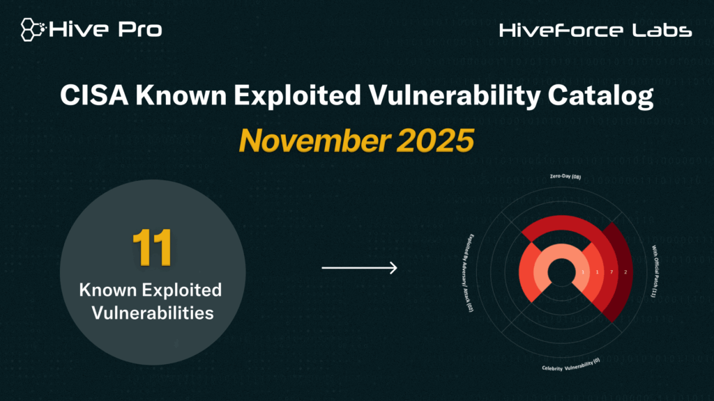 It is recommended that all organizations review and monitor the KEV catalog, prioritize remediation of listed vulnerabilities, and reduce the likelihood of compromise by threat actors. In November 2025, 11 vulnerabilities met the criteria for inclusion in the CISA’s KEV catalog. Of these, eight are zero-day vulnerabilities; two have been exploited by known threat actors and employed in attacks.
