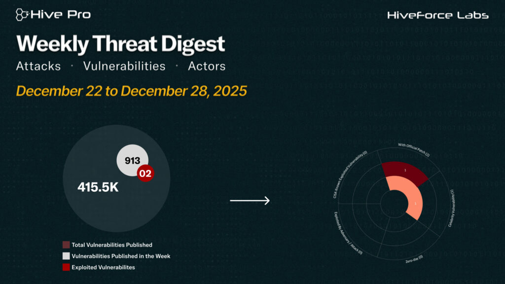 HiveForce Labs has reported a sharp rise in cybersecurity threats, highlighting the increasing complexity and frequency of global cyber incidents. Over the past week, three major attacks were detected, two critical vulnerabilities were publicly disclosed, and one active threat actor group was monitored, signaling a concerning escalation in malicious activity.
