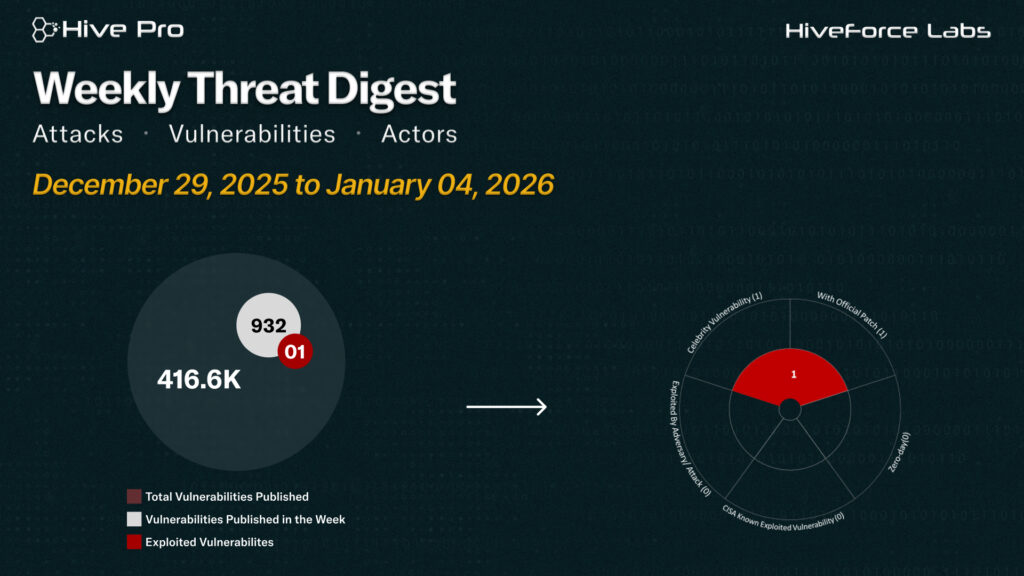 HiveForce Labs has recently made significant advancements in identifying cybersecurity threats. Over the past week, four major attacks were detected, one critical celebrity vulnerability was actively exploited, and two threat actor were closely monitored, reflecting an alarming escalation in malicious activities.